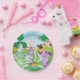 Dieser helle Sommerschnappschuß kennzeichnet eine glückliche Gruppe Haustiere, die Spaß in der Sonne genießen, während sie herum mit einem Sprenger spritzen! Der aufgeregte grüne Erdwelpe, Nimbi Hamster, Angora-Häschen, Tickled rosa Katze, Schäferhund, mystisches Pony und Topf aufgeblähte Schwein-Liebe, Sommer zu feiern!