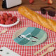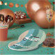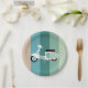 Gestreifter Retro Roller-Party-Papier-Teller. Entworfen durch Anna-Marie Bush