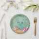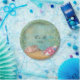 Schöner Sandstrand mit türkisfarbenen und rosa Glitzern. Sand Dollars, Starfish und Muscheln schmücken die Teller. Personalisieren Sie mit Ihrem Text, um die perfekte Ergänzung zu Ihrer Feier zu schaffen.