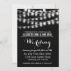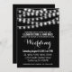 Moderne Sommer-Hochzeits-Schnur beleuchtet Schwarzweiss-Entwurfseinladung mit einfachem, dennoch schwärzen die eleganten glühenden weißen Schnurlichter, die über der Spitze mit einer stilvollen Mischung der modernen Typografie auf einer Sommernacht hängen, Hintergrund. Ein einfacher und modischer, adretter Entwurf, vervollkommnen für Sommer! Klicken Sie "BESONDERS ANFERTIGEN ES" Knopf, um Schriftart besonders anzufertigen, Text zu bewegen, die Hintergrundfarbe zu ändern und Ihren eigenen einzigartigen ein-von-ein-netten Einladungsentwurf zu schaffen an.
