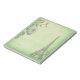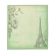 5,5" x 6" grünes und gelb beschichtetes Notizblock mit einem grauen grünen Bild des Eiffelturms und graugrünen Blume. Die gesamte Cancan Notepad-Auflistung finden Sie in den SPEZIELLEN TOUCHS. | Abschnitt Gastgeschenke.