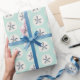 Inspirierte und summery Geschenkverpackung eines Strandes mit einem ganz vorbei Sand-Dollardruck in aquamarinem, in Sahne und Marine.
