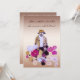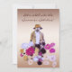 Fertigen Sie leicht diese wunderliche, künstlerische Sommer-Sonnenwende-Party Einladung besonders an, die einen mystischen Blumengärtner kennzeichnet, der in seinen Dahlien verloren ist. Er wird in den Schatten des Brauns, des Goldes, des weißen und Tan und Sport ein Hut für Schatten, ein Bart und ein Schnurrbart gekleidet. Die Blumen sind magentarot Lila, rosa, gelb, Lavendel und und bilden ein abstraktes Muster, das um ihn wirbelt. Ein kleineres Bild wird auf der Rückseite sowie allen passenden Informationen wiederholt.