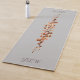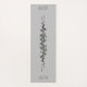 Jede Seite dieser grauen Yogamat hat Weinreben in den Farben Sommer und Herbst verschlungen. Grün, lila, Orange und Gold, die den Jahreswechsel vor grauem Hintergrund darstellen.