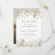 Dieses Design enthält einen Wasserfarbenrand aus Wildblumen in Schattierungen von Gold, Rot, Blau und Grün. Perfekt für Frühjahrs- und Sommerhochzeiten.