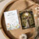 Dieses Design zeigt eine Reihe zarter Aquarell-Wildblumen. Perfekt für sommerliche Gartenhochzeiten.