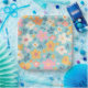 Rosa, goldfarbene und weiße Sommer-Blume auf Aqua-Hintergrund.