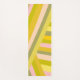 Diese stilvolle Yoga-Matte zeichnet sich durch ein einzigartiges geometrisches Streifen-Muster in einer hellen und skurrilen Farbpalette aus Chartreuse, Limon, gelb und pink aus. Tolle Geschenkidee!
