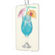 Blauer Sommercocktail mit Strohhalm, orangefarbenem Schnitt, Kirsche und Papierschirm.