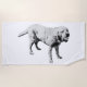 Ein spielerisches monochromes Hundedesign mit einem Ball, das sich mutig über das Handtuch streckt. Es ist ein idealer Ort für einen Tag am Pool oder am Strand.
