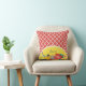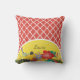 Ein fiesta rotes Vierblatt-Muster quadratischen Kissen mit bunten sommerlichen Blume geschmückt. Persönlich gestaltet sich das gemusterte Design der Blumen, indem man den Namen einer lebendigen jungen Frau hinzufügt.
