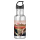 Eine abstrakte Landschaft mit einzigartigen Farben und Texturen, die eine Naturlandschaft mit aufsteigender Sonne und zwei Gänsen in Orange-, Beige-, Braun- und Rosatönen zeigt.