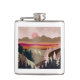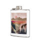 Eine abstrakte Landschaft mit einzigartigen Farben und Texturen, die eine Naturlandschaft mit aufsteigender Sonne und zwei Gänsen in Orange-, Beige-, Braun- und Rosatönen zeigt.