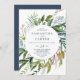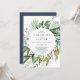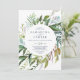Dieses Sommer Grün lässige Hochzeitseinladung ist perfekt für eine elegante Mittelsommer Hochzeit. Das botanische Design besticht durch eine üppige Anordnung von gemalten Aquarelleukalyptusfarben, Grünpflanzen und grünen Blätter mit subtilen Blumenzwiebeln in Rosa.