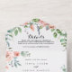 Diese Sommerbrise Blumen Kalligraphie Hochzeit alles in einer Einladung ist perfekt für eine rustikale Hochzeit. Die Einrichtung besteht aus rosa, rot, lila, handbemalten Aquarell-Rose-Blume mit grünem Blattwerk. Rett Papier, indem mehr Details in die Einladung aufgenommen werden anstatt auf einer separaten Gehäusekarte.
