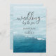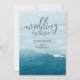 Sommerhochzeit am Ozean des blauen Meerwassers. Landschaftsbild einer schönen tiefen, blauen Wellen am Ozean mit weißem Schaum oben. Ombre von tiefblau bis hellblau. Gewohnte personalisierte Sommerhochzeit am Meer.