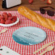 Sommerhochzeit am Ozean des blauen Meerwassers Pappteller