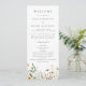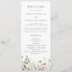 Dieses Design zeigt einen Wasserfarbeneinfassungen aus Wildblumen in Schattierungen von Gold, Rot, Blau und Grün. Perfekt für Frühjahrs- und Sommerhochzeiten.