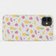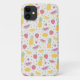 Sommerkollektion von Orangen, Erdbeeren, Ananas und Wassermelonen, rosa und gelbe Muster