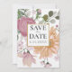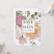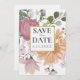 Moderne, stilvolle große und kühne Blume schmücken diese Hochzeit SAVE THE DATE. Sauberes und einfaches Rücken mit Ehenamen.