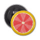 Diese Magnettasten-Flaschenöffner haben ein Grapefruitschnitt-Design mit Retro-60er-Pop-Kunstgefühl. Es ist ein lustiges, sommerliches Design für jeden Feinschmecker oder jeden, der Obst .