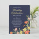 Das blumengeschmückte Hochzeitsthema erhält mit dieser kühnen und hellen Einladung ein modernes und modernes Aussehen. Es verfügt über eine Aquarellecke mit blühenden Taglilien auf einem dramatischen marineblauen Hintergrund. Die Farbtöne sind lachsfarben, rosa, hellgelb, orange und grün in der Mandarine. Ihr eigener Text ist in der Mitte weiß, mit der Typografie "Hochzeitsfeier" in Gold. Die Rückseite der Einladung ist massiv passend marineblau, mit einem oberen Rand von Taglilien in den gleichen Farben. Schauen Sie sich die passenden Hochzeitsprodukte in unserem Shop an.
