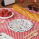 Verschiedene bunte Wildblumen auf cremefarbenem Hintergrund.
