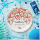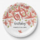 Lebhafte, handbemalte Aquarellgarten-Blume in einer atemberaubenden Koralle, Terrakotta und grüner Farbpalette sorgen für eine fröhliche und frische Atmosphäre für eine unvergessliche Geburtstagsfeier.