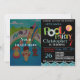 Printable Summer Pool Party Einladung für Jungen. Set auf einem Kalkbrett mit bunten Sommerbeckenelementen, blauen Wasserwellen und Beachball. Ideal für eine Geburtstagsfeier im Freien mit nahen Freunden.