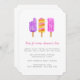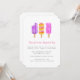 Die Hauptgrafik in den Einladungskarten ist eine Reihe von handgemalten, lustigen und hellen Trio von bunten eisigen Stangen auf Stöcken (aka popsicles). Icy Pole Farben sind Pinke, Purpel, Orangen und Gelb.