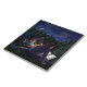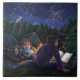 Die Starry Night Art von Traci Van Wagoner druckt, Plakate, Accessoires und Geschenke zeigt unser originelles Gemälde von zwei Kindern und ihrem großen, schwarzen Camping unter den Sternen, das ein fantastisches Buch rund um ein Lagerfeuer über Ritter und Drachen liest. Der Zauber der Geschichte wirbelt in den Sternenhimmel, um einen Ritter und einen Drachen in einem ewigen Nachts-Tanz von Sternen zu zeigen. Genießen Sie ein Nachtlager in den Bergen.