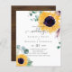 Hübsche Aquarellgelbe Sonnenblumen auf dieser modernen Hochzeitseinladung oder Save the Date Gegenstand. Textvorlagenfelder beiderseits stellen sicher, dass Sie alle Ihre zusätzlichen Daten hinzufügen können, einschließlich uAwg, Geschenkregistrierung, Empfang, Wegbeschreibung und mehr.