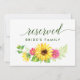Dieses sommerliche Sonnenblumenschild "reserviert" ist perfekt für eine Frühjahrs- oder Sommerhochzeit. Die Karte ist zweiseitig (beidseitig gedruckt). Das Design ist mit Blumengrün, hellgelben Sonnenblumen und rosa Gerbera-Blume gestaltet. Benutzen Sie diese Karten, um Stühle oder Tische bei Ihrer Hochzeitsfeier, Empfang oder jeder Veranstaltung zu reservieren.