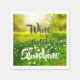 Ein lustiges Sommersonnenschein-Foto mit den Worten "Wein und Sonnenschein" vorne. Ein hübsches Party-Accessoire für jede Jahreszeit.