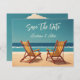 Sommerurlaub am Strand mit zwei Stühlen Save the Date Einladung
