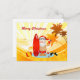 Spaß Weihnachten für die Menschen auf der Südhalbkugel, die einen heißen Sommer Weihnachten haben, mit dem Weihnachtsmann am Strand in seinen Schwimmzügen mit einem Surfbrett. sgb01