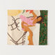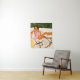 Eine entspannte Figur in einem rosa Kleidersessel auf einem sonnigen Innenhof, umgeben von üppiger Vegetation und lebhaften Blumen. Dieses Kunstwerk spiegelt die Wärme und Ruhe eines mediterranen Sommernachmittags wider.