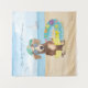 Summer Paws III von Beth Grove. Eine Dackel, die zum Strand bereit ist, trägt Schwimmzüge, Brillen und einen Hut, wenn sie im Sand sitzt. Enthält auch den Satz "Die Hundetage des Sommers".| SID23583A