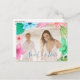 Moderne Hochzeit in Aquarellfarben speichern das Datum farbenfroh rot rosa, grün, aquamarin blau tropischen Blumen Hochzeit speichern das Datum Postkarte mit einem modernen Typografie-Skript und mit Ihrem Foto. ++++++++++++++++ Perfekt für einen Sommer-Hawaiianischer Themenstrand, Meer, Küste, Küste, Küste, tropische, nautische Hochzeit. +++++++++ Einfach mit Ihrem Foto und Ihren Details personalisieren!