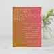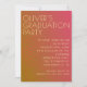Die Einladung zur Graduierungsparty bietet einen lebendigen, hitzewellen inspiriert Hintergrund mit warmen Farben, die von goldfarbener Orange bis feuerrot verschmelzen und so das Wesentliche eines heißen Sommertages einfangen. Der kühne, moderne Schriftart zeichnet sich durch große Buchstaben aus und sorgt für den Pop der Veranstaltung gegen den schimmernden, wellenartigen Verlauf. Minimalistische Akzente wie ein Martini-Glas oder Zitrusscheiben sorgen für eine lustige Touch, ohne das Design zu übertreiben, und geben ihm ein lebendiges, sommerliches Ambiente, das perfekt für einen festlichen Abend ist.
