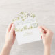 Elegante Aquarellfarben-Blume, Blätter und Vögel in einer Einladung zur Hochzeit, die die Hochzeitsinformationen und die UAWG-Postkarte beinhaltet, die Ihre Gäste abreißen und versenden. Umschläge werden nicht benötigt. Gelbtöne, Blues und Grüntöne. Ideal für einen Sommer, Herbst, Frühling, Boho oder eine Hochzeit im Freien!