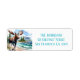 Im Sommer werden Rücksendeadressen-Aufkleber mit Aquarellmoose am Strand beleuchtet. Personalisierbar.