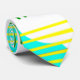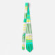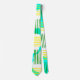 Diese Krawatte hat ein modernes Design, das wie ein Gewebe mit gelben und grünen Linien auf einem hellblauen Feld mit Wolken aussieht.
