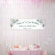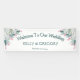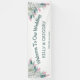 Summer Sage Wedding Banner entworfen mit Haufen von weichen Pastellfarben Pink und Sage Green Blumengestein, mit Sage Green Text auf einem weißen Hintergrund. Der Text enthält: Willkommen bei unserer Hochzeit, und die Namen der Braut und des Bräutigams. Zum Personalisieren einfach die Namen von Braut und Bräuche in unsere einfache Vorlage einfügen und den Beispieltext ersetzen. Schauen Sie sich unbedingt die komplette Summer Sage Green Floral Wedding Collection an, um passende Schreibwaren und Accessoires zu finden.
