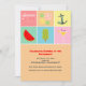 Eine Sommer-Party Einladung, die fünf Ikonen des Sommers und der Wörter "Sommerzeit" kennzeichnet. Vervollkommnen Sie für jede mögliche Sommerfeier. (Flache Ikonen der Vecteezy Sommerzeit Farbdurch happymeluv). Die Karte ist einfach, mit Ihrer Benennung, Schriftart-, Schriftartfarbe-, Papierformwahlen und Wahl von sechs Papiersorten besonders anzufertigen.