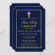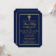 Elegante Navy Blue und Gold Erste Heilige Kommunion Einladung mit Kreuz. Goldrahmen. Gold Cross.