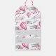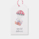 Die süßen Geschenktafeln in Aquarellfarben sind mit einem umhüllten Geschenk versehen, das auf einem roten und weißen Fallschirm herunterschwebt und darunter "besondere Lieferung" enthält. Die Tags kehren zu einem Muster Vintager Zweiflugzeuge und Fallschirme um, in denen der Geschenkgeber und die Namen des Empfängers mit Platz für die Hand geschrieben werden können.