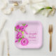 Schöne lackierte Aquarell Hibiskus Hochzeitspapier Teller. Schattig in hübschen Farbtönen und Grüntönen. Bearbeiten Sie diese Art Hochzeit Teller mit Ihrem eigenen Namen und Hochzeitsdatum. Ideal für diejenigen, die Einfachheit und Romantik mögen. Ideal für Kirche, Landhausstil, Garten, rosa Themen und einfache Heirat. Eine großartige persönliche Ergänzung zu Ihren Hochzeitstischen oder nach der Hochzeit Buffets oder Party Essen. Personalisieren Sie Ihre Brautnamen und Vornamen. Einzigartig in den PanAquarellen gemalt und von Sarah Trett entworfen.