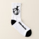 Diese lustigen Fußballsocken für Frauen sind mit einer silbrigen Fußballspielerin ausgestattet, die einen Fußball-Ball mit einer Fußballgrafik spielt - ihre Trikotnummer auf dem Fußball und ihr Name ist individuell einstellbar - von katz_d_zynes