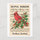 Nordischer Kardinal auf Rotblütenzweig mit Notenhintergrund